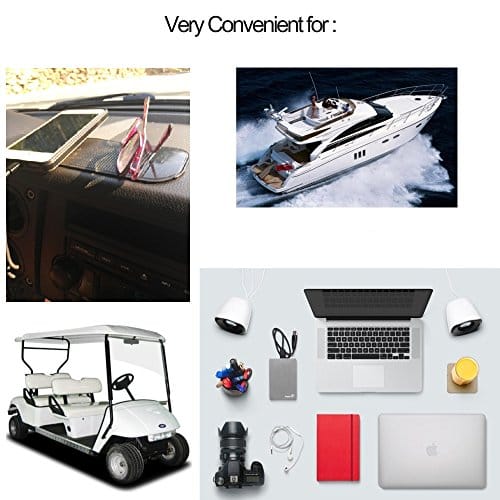 No more problems trying to get “sticky” pads to stick to the dash. These are truly sticky, heat resistant, cold resistant, soft, flexible and super elastic! Strong adhesion: holds your mobile phone, keys, glasses, headsets, speakers, MP3 player, Laser / Radar detector, bobblehead toy, pens, GPS, HUD, cigarettes, lipstick, watches, purse, flashlight, coins, garage door opener, firmly on your dashboard. No adhesive or magnet needed in your car, truck, SUV, boat, RV counter tops, treadmill or gym any more.