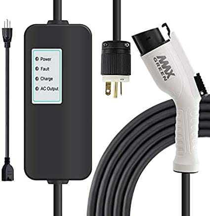 MAX GREEN Level 1&2 EV Charger, Electric Vehicle Charger (16A,100-240V 25FT) with NEMA6-20 Plug (with NEMA5-15 Adapter), Fast EV Home Charging Station