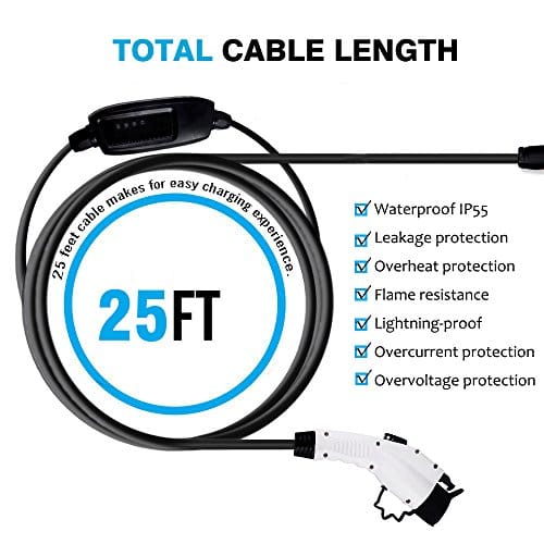 MULTIPLE PROTECTION: The EVSE providing lightning-proof, leakage, overvoltage, overheat, IP55 rating waterproof, UL94V-0 rating flame resistance and overcurrent protection for your safety, and features control box with LED charge status indicators
