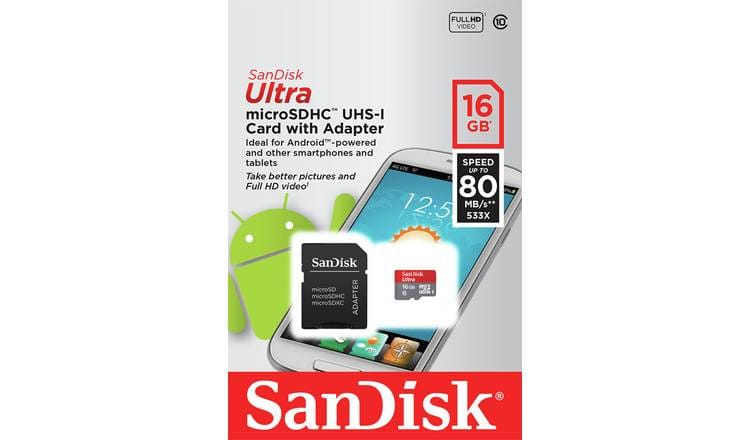16GB SanDisk Ultra 80MBs – Micro SD Memory Card